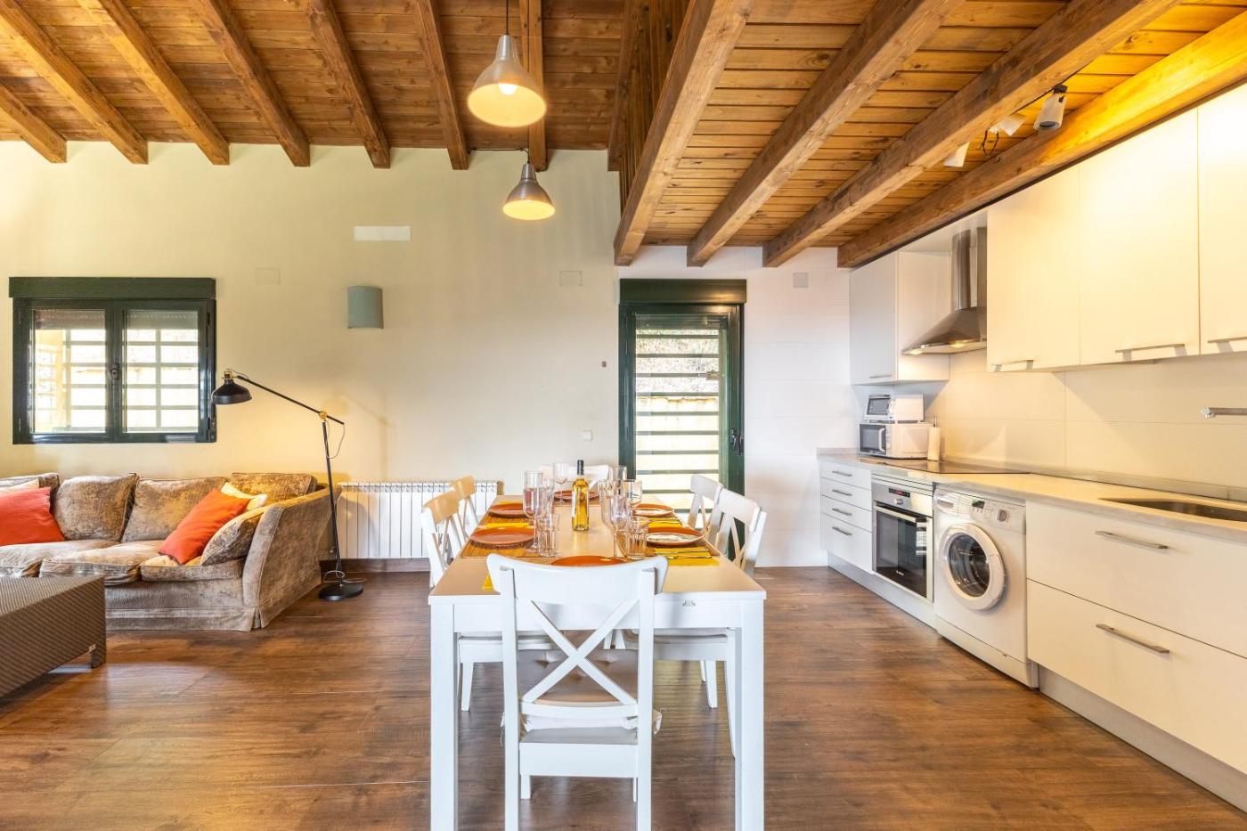 La casa rural tiene 5 dormitorios, 3 baños, ropa de cama, toallas, TV, cocina totalmente equipada y patio con vistas a la montaña.